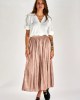 Bež plisirano krilo iz kolekcije Just-R je idealno za vnos elegance in svežine v vašo garderobo. Izdelano je iz sijoče tkanine, ki ustvarja čudovit vizualni učinek z vsakim gibom.