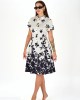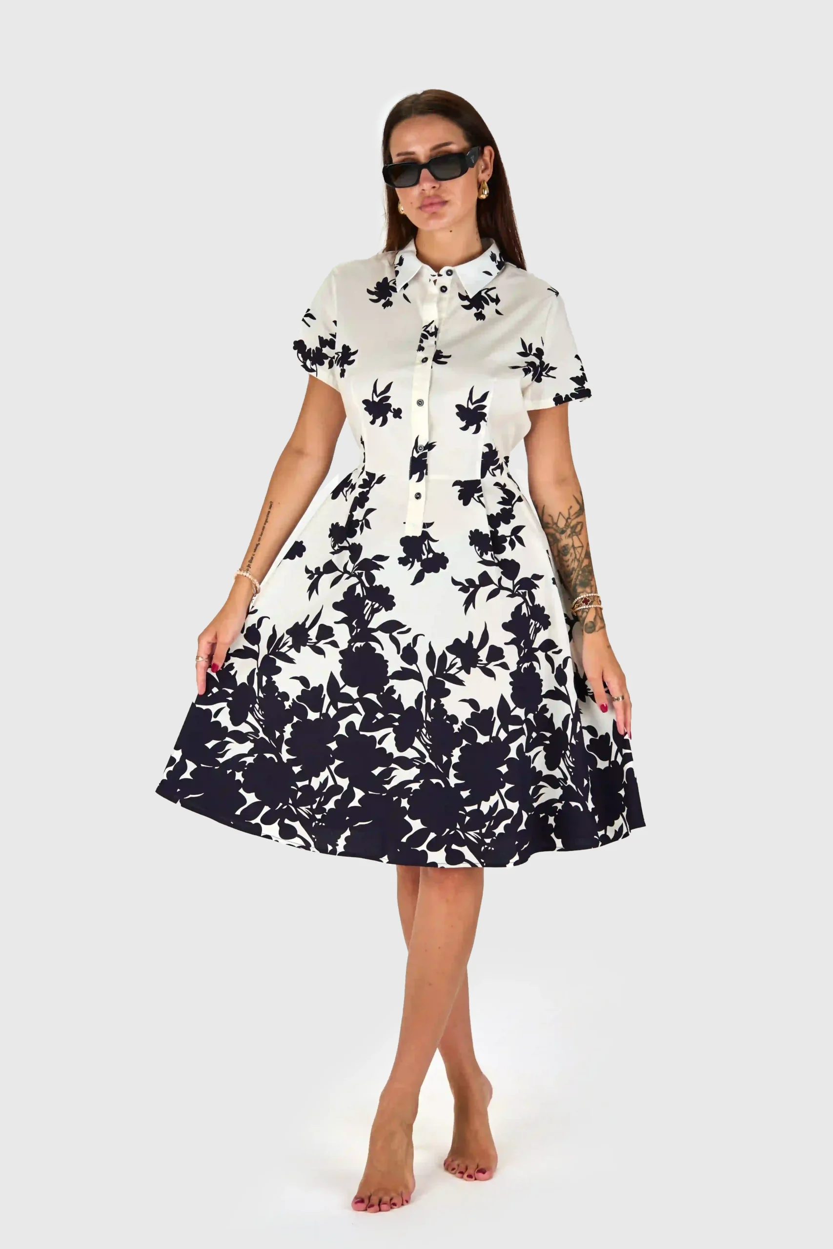 Obleka “Klasična Sproščenost” združuje udobje in brezčasen stil, kar jo naredi popolno za različne priložnosti. Zgornji del obleke je ozek, kar poudari postavo, medtem ko se spodnji del elegantno razširi, kar omogoča lahkotno gibanje in ustvarja ženstveno silhueto. Sprednje zapenjanje na gumbe dodaja klasičen pridih in omogoča prilagodljivo nošenje. Na straneh je skrita zadrga, ki ohranja čist in eleganten videz ter omogoča enostavno oblačenje. Kratki rokavi in bombažna tkanina zagotavljajo udobje in zračnost skozi ves dan. Ta obleka je idealna za dnevne izlete, poslovne sestanke ali sproščene večere.
