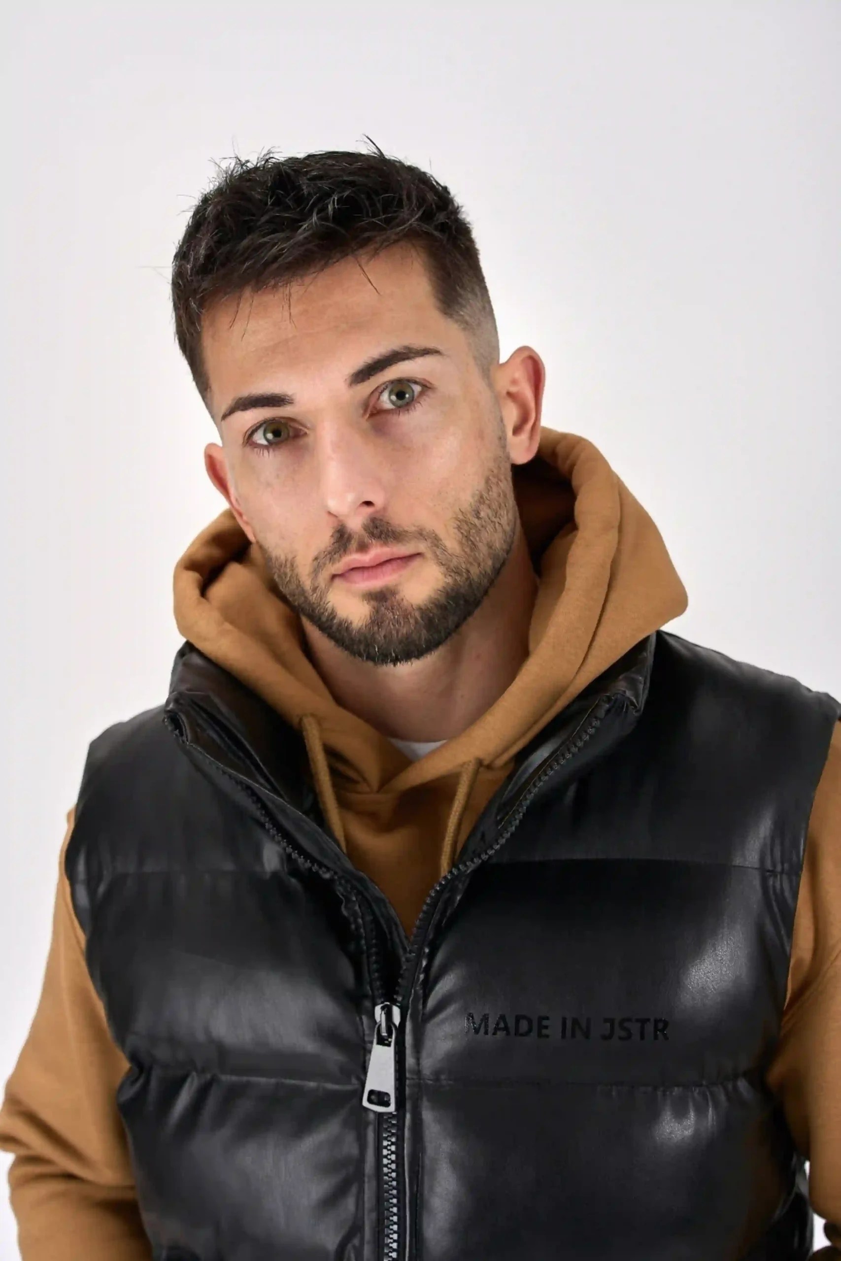 Brezrokavnik iz imitacije usnja je zasnovan za moderen videz in udobje. Izdelan iz kakovostne imitacije usnja, nudi eleganco in trajnost, hkrati pa je lažji in bolj prijazen do okolja. Njegov preprost, a stiliziran dizajn se odlično dopolnjuje z različnimi oblačili, kar omogoča vsestransko kombiniranje. Ta brezrokavnik je popolna izbira za tiste, ki želijo dodati kanček šika svoji garderobi, hkrati pa uživati v svobodi gibanja.