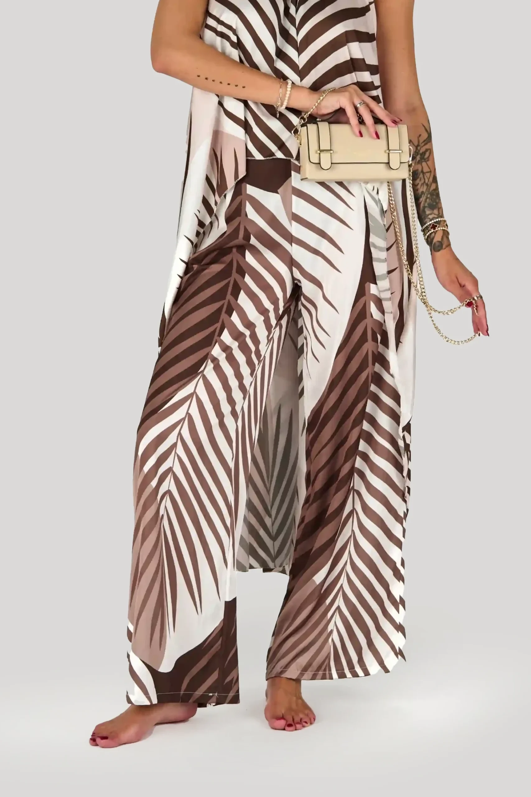 Ne pozabite, da so ŠIROKE HLAČE Z VZORCEM PERESA odlična izbira za poletne večere in posebne priložnosti.