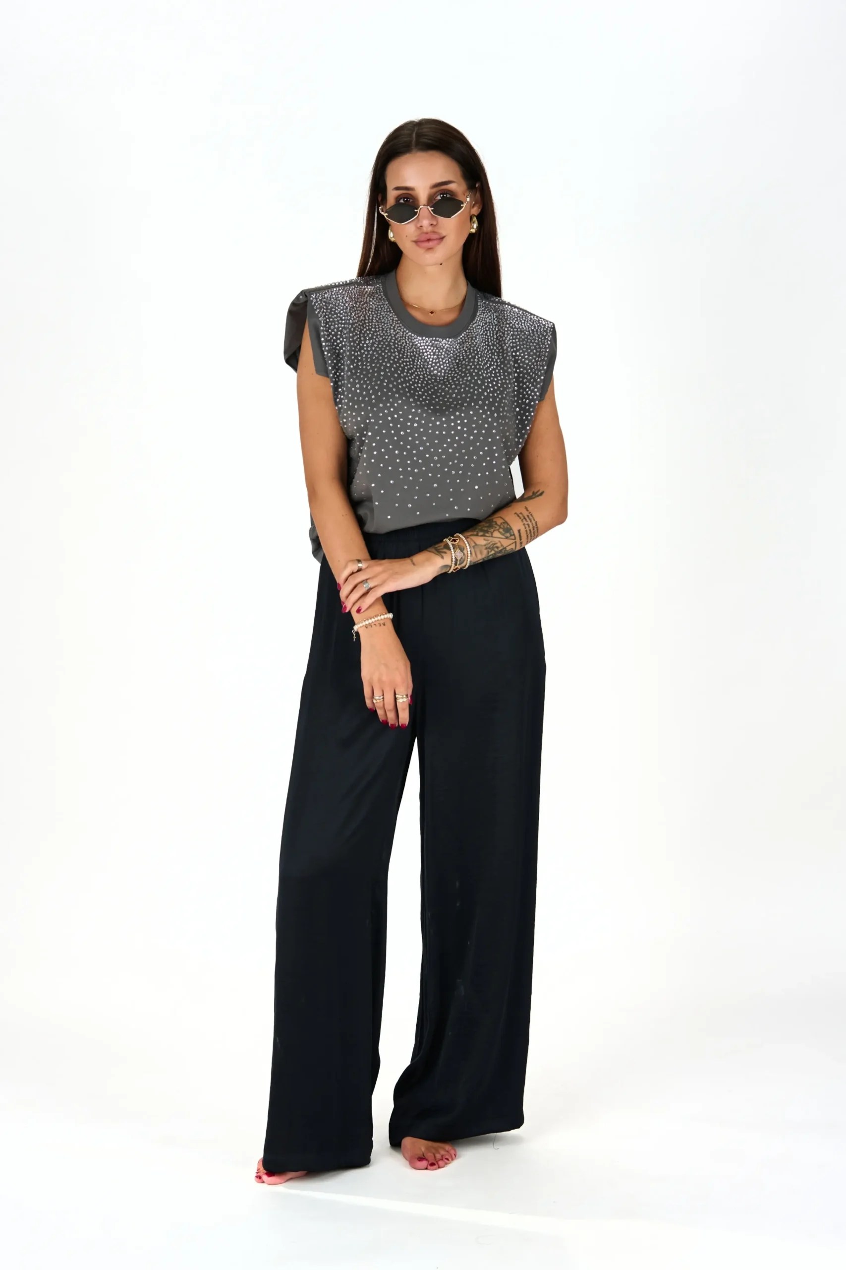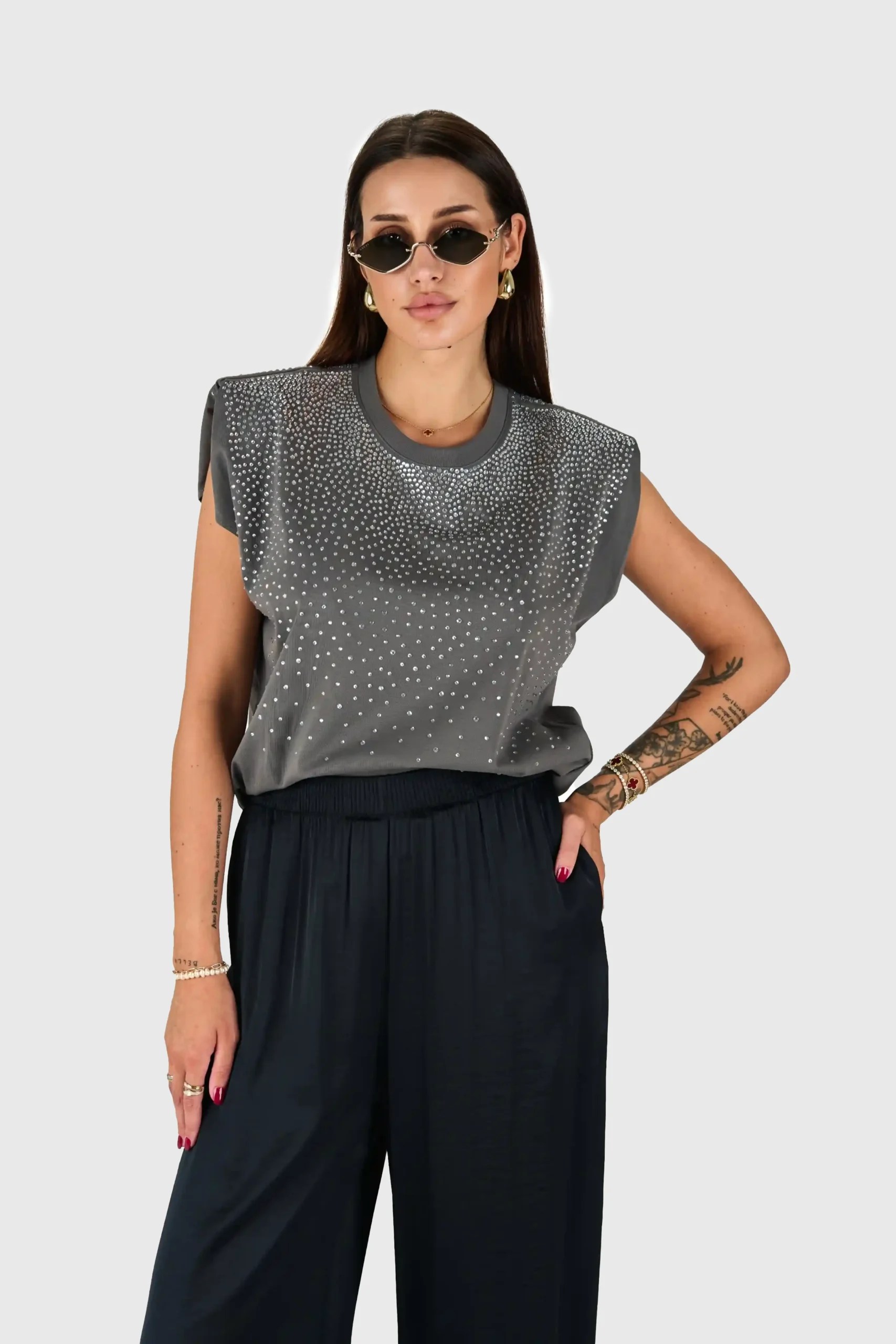 Ne pozabite, da je IKONIČNA MAJICA BREZ ROKAVOV S PODLOŽENIMI RAMENI popolna za večerne izhode in posebne priložnosti. Odkrijte še več stilov v naši kolekciji, ki združujejo eleganco in modno drznost.