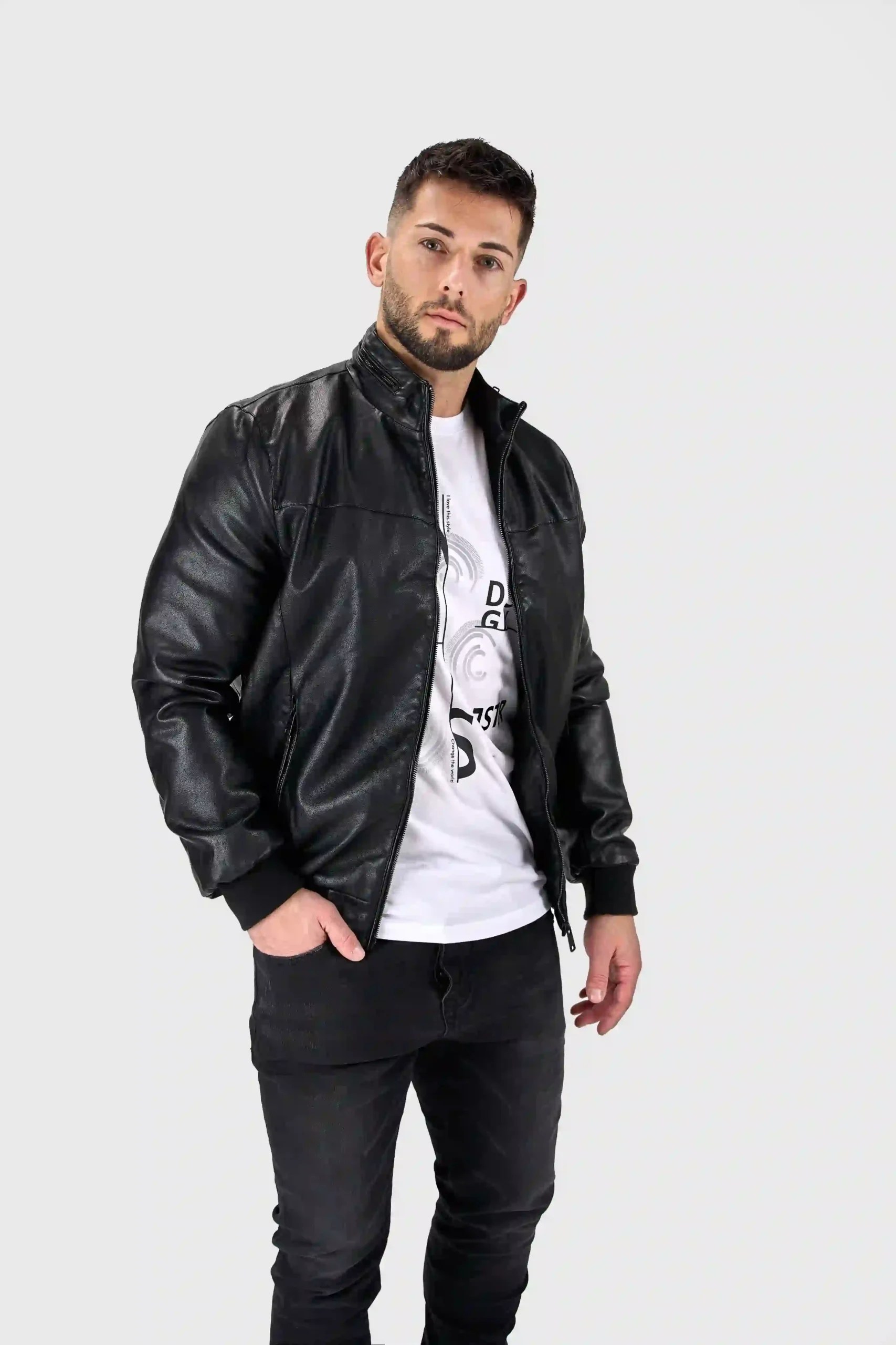 Moška jakna iz imitacije usnja je klasičen kos, ki združuje eleganco in udobje. Spodaj ima patent, ki omogoča prilagoditev, medtem ko se spredaj zapenja na zadrgo za enostavno oblačenje. Detajlni šivi spredaj dodajajo poseben značaj in teksturo, kar jakno naredi še bolj privlačno. Ta jakna je odlična izbira za vsakodnevno nošenje in prefinjen videz.