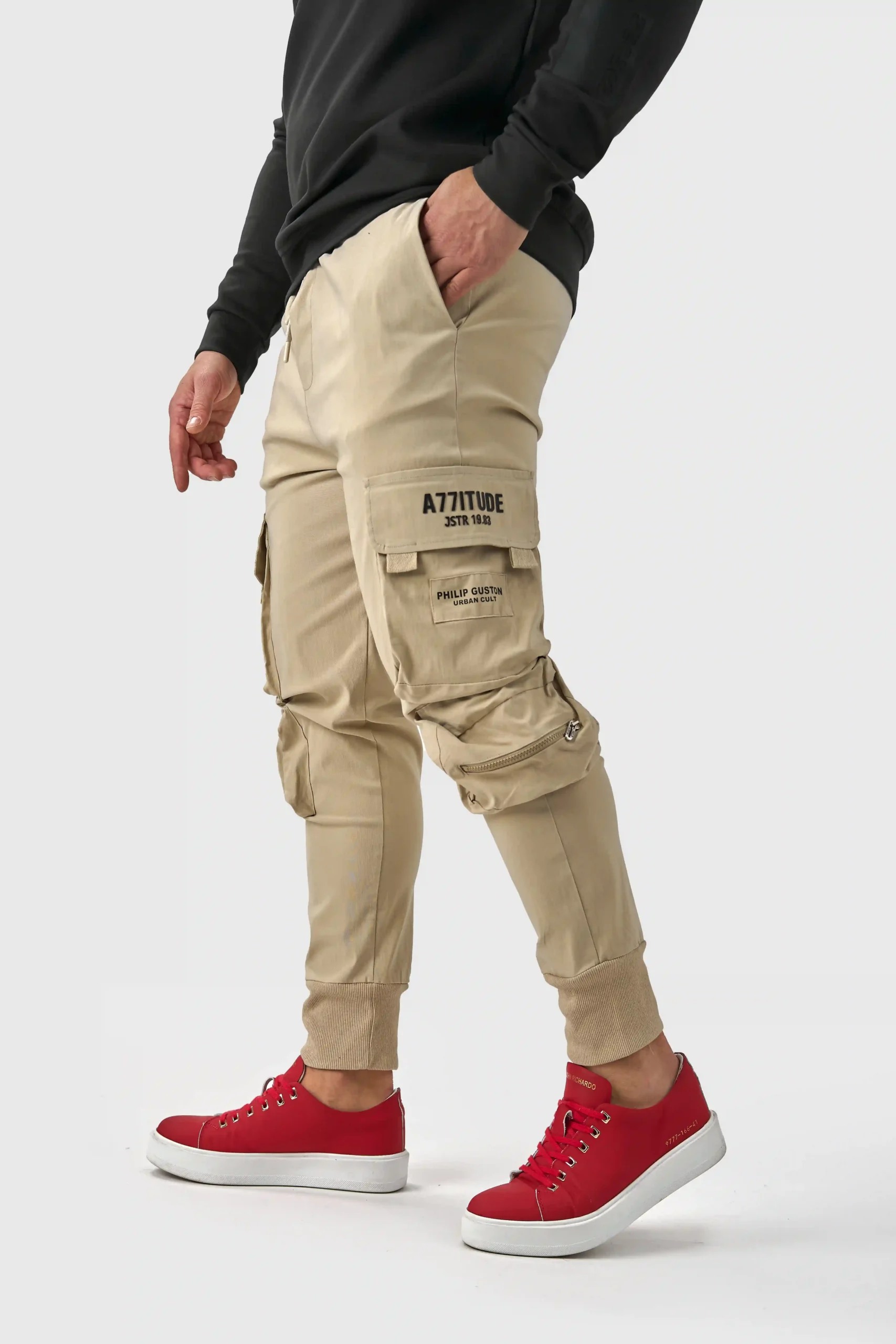 Cargo hlače iz enobarvnega udobnega raztegljivega bombažne tkanine z zelo udobnim krojem.