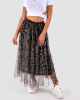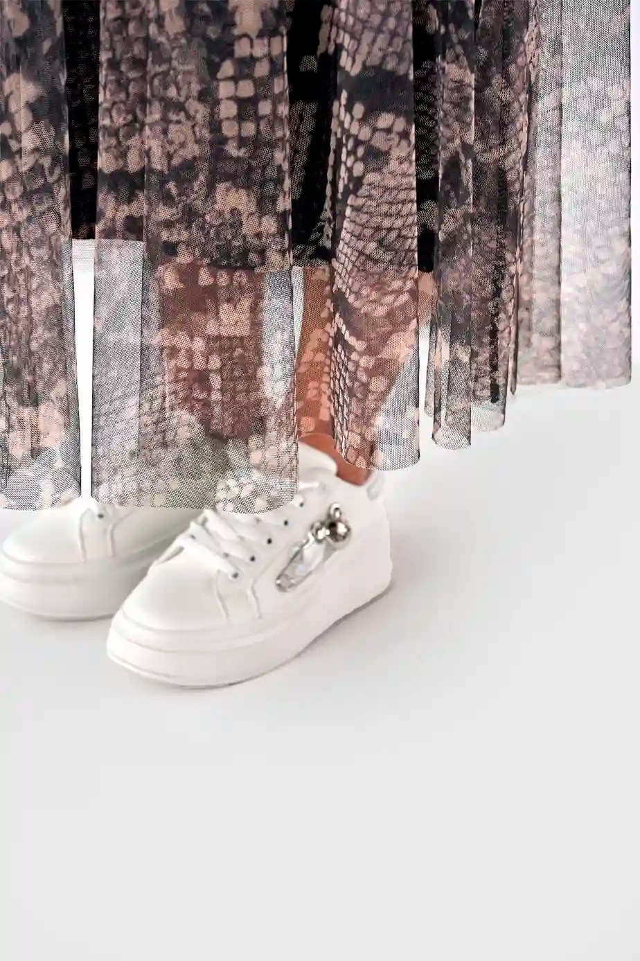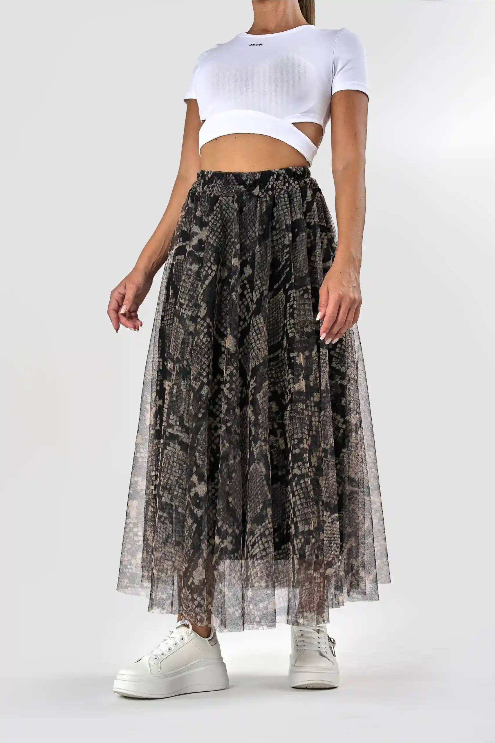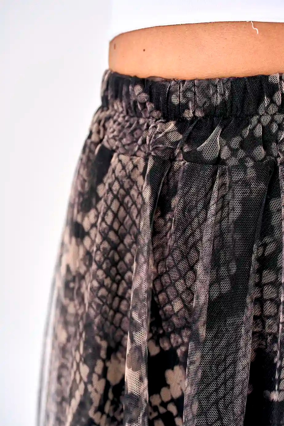 Dolgo krilo izdelano iz visokokakovostnega poliestra, ki zagotavlja udobje in vzdržljivost. Elastični pas omogoča prilagajanje in udobno nošenje krila. Oblačilo zaznamujejo kačasti vzorci.