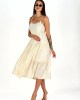 Lahkotna obleka iz viskoze in svile z naramnicami, všitimi bleščečimi krogci in hrbtno nastavljivo vrvico za glamurozen videz.