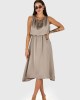 Ne pozabite, da je LAHKOTNA VISKOZNA OBLEKA Z ELASTIKO NA SREDINI odlična izbira za sproščene poletne dni in sprehode ob plaži.