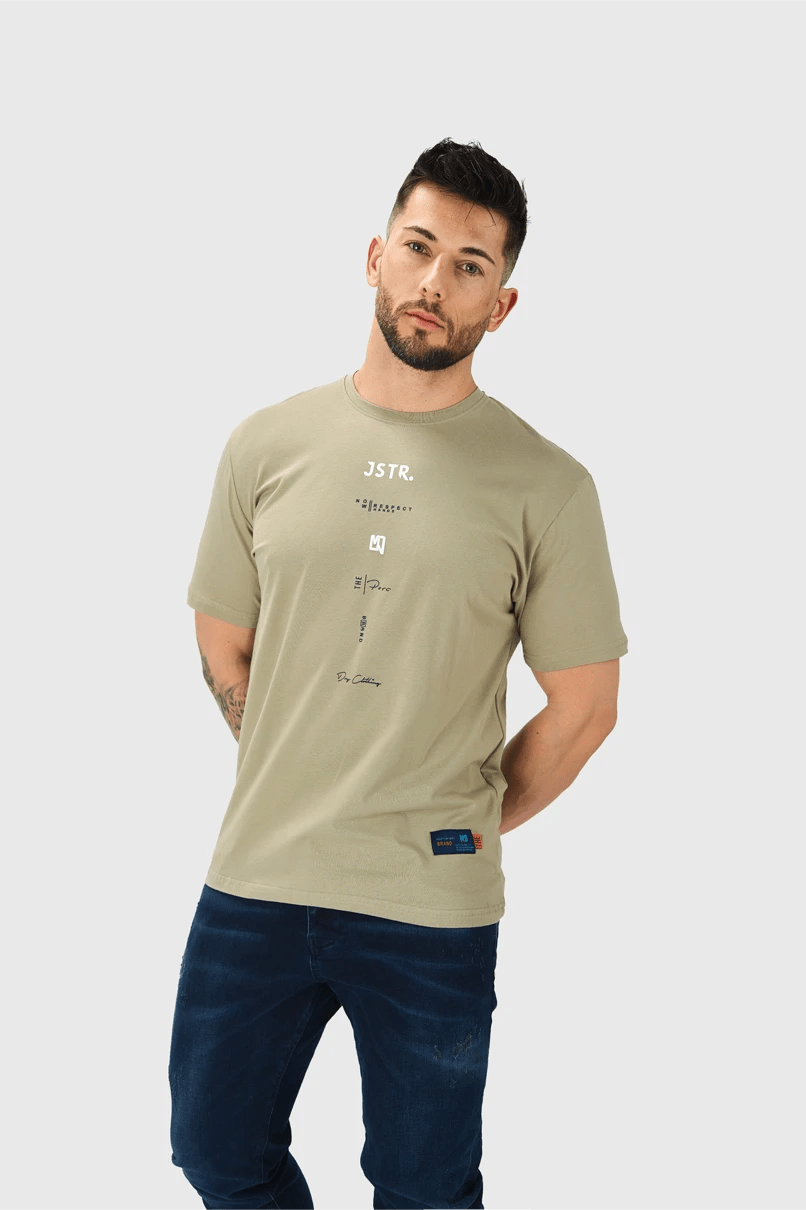 Ta kratka majica, normalnega kroja, je izdelana iz visokokakovostnega jersey bombaža, ki je zelo raztegljiv in prijeten za nošenje. Material omogoča izjemno udobje in svobodo gibanja, zaradi česar je idealen za vsakodnevno uporabo. Spredaj in na hrbtni strani ima privlačen potisk, ki daje majici moderen in dinamičen videz.