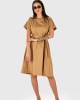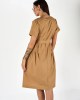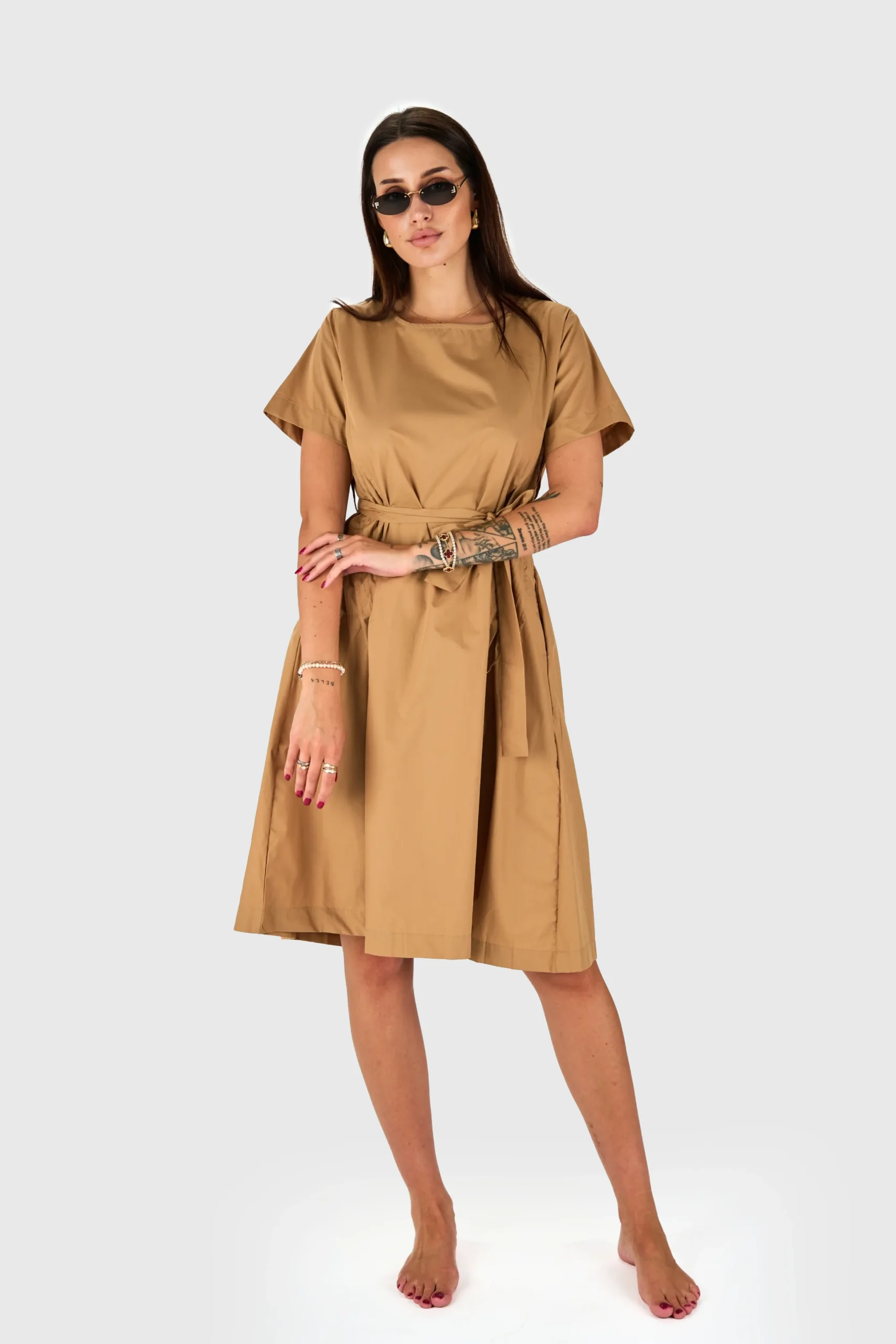 Obleka “Poplinska Preprostost” je sinonim za elegantno udobje, ki ga lahko nosite vsak dan. Izdelana iz kakovostnega poplina, ta obleka združuje preprostost in stil. Kratki rokavi poskrbijo za zračnost in lahkotnost, kar je idealno za tople dni. Spredaj se nahaja nastavljiv pas iz iste tkanine, ki omogoča prilagoditev po vaši meri, hkrati pa dodaja strukturiran videz. Ta detajl poudari vašo silhueto in doda pridih elegance. Obleka je popolna za dnevne izlete, pisarniške dneve ali sproščene večerje, kjer želite izgledati urejeno in modno.