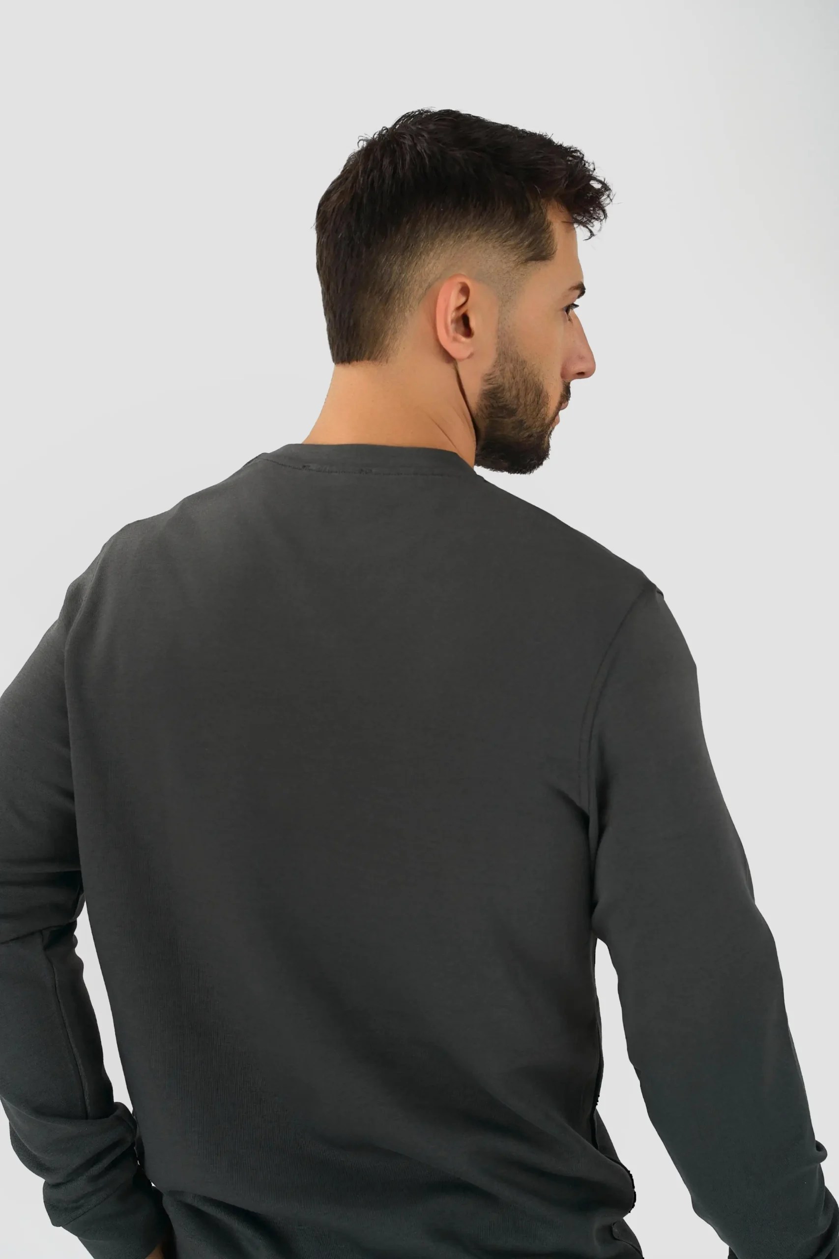 Pulover z okroglim izrezom iz mehkega in interlock bombaža. Oblačilo z ozkim krojem zaznamuje obarvane manšete in 3d črke na sprednji strani.