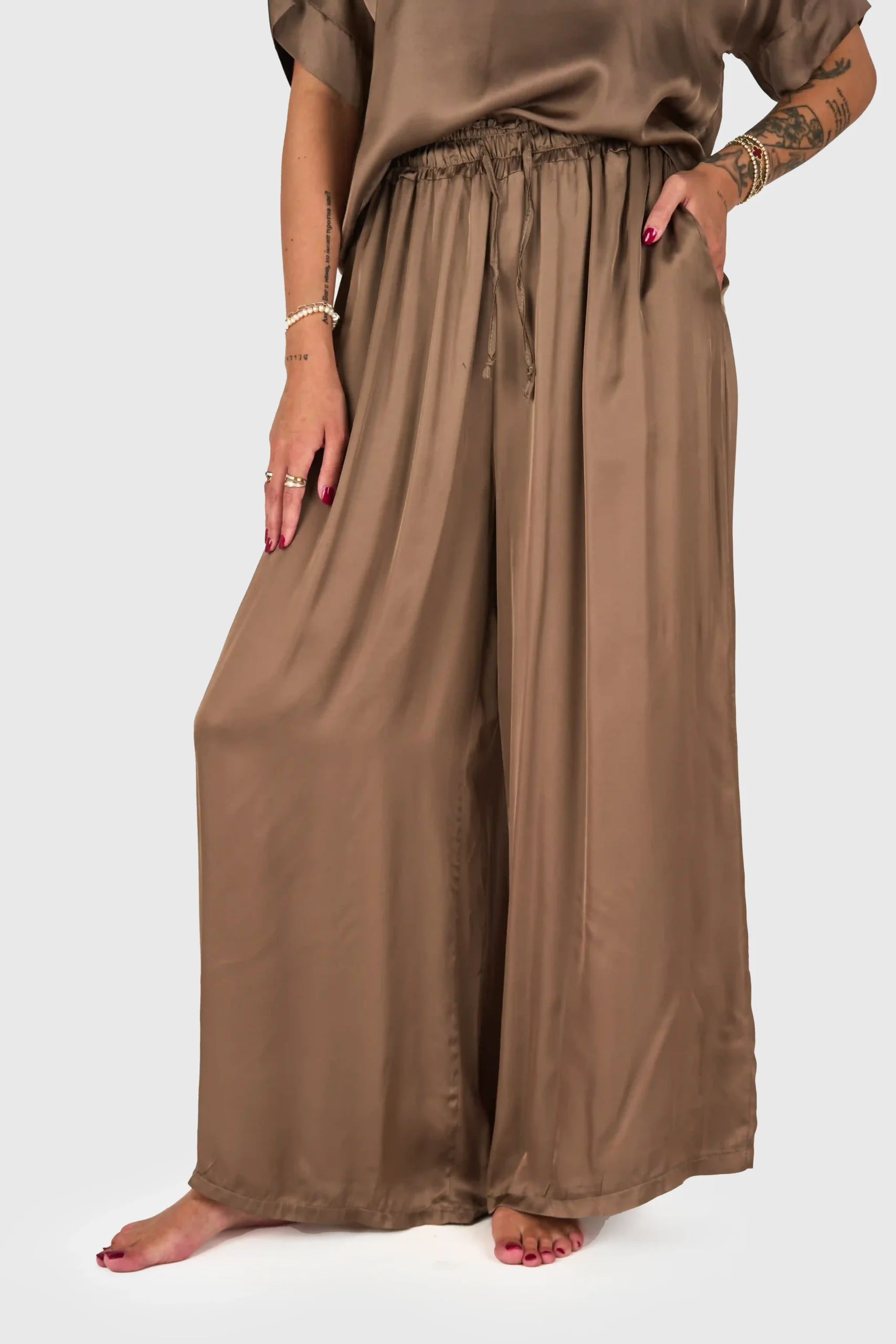 ŠIROKE HLAČE Z ELASTIČNIM PASOM IN NASTAVLJIVO VRVICO