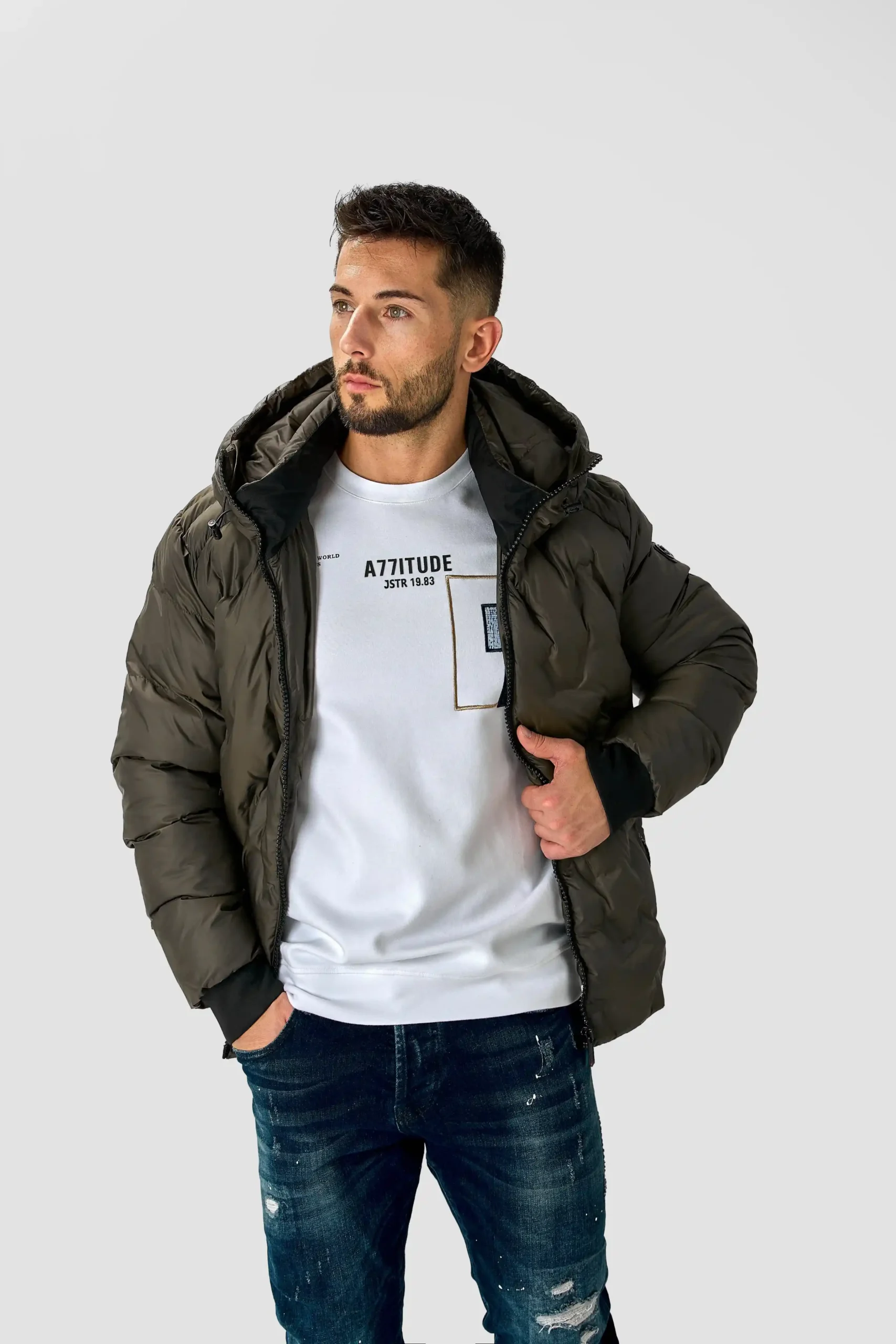 Zimska jakna iz tehničnega najlona s polsvetlečim zaključkom. Oblačilo se odlikuje po udobnem in širokem kroju. Zaradi trdnega notranjega oblazinjenja je idealen tudi v najhladnejših dneh. Artikel oplemeniti nova tehnologija šivanja.