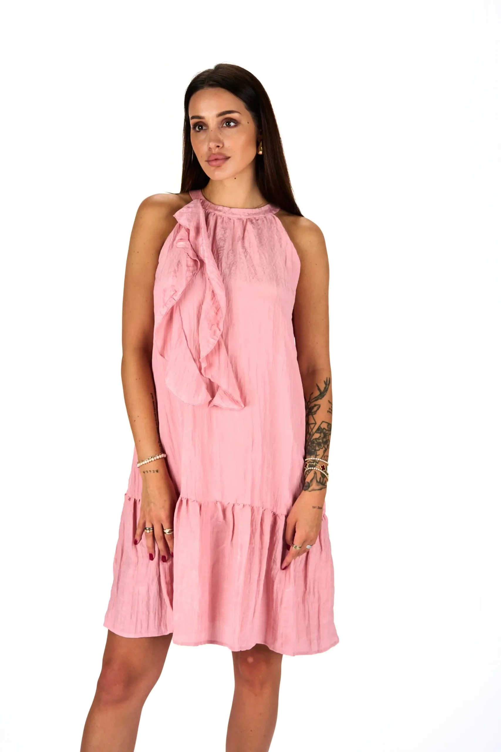 DOLGA OBLEKA BREZ ROKAVOV Z NABORKI