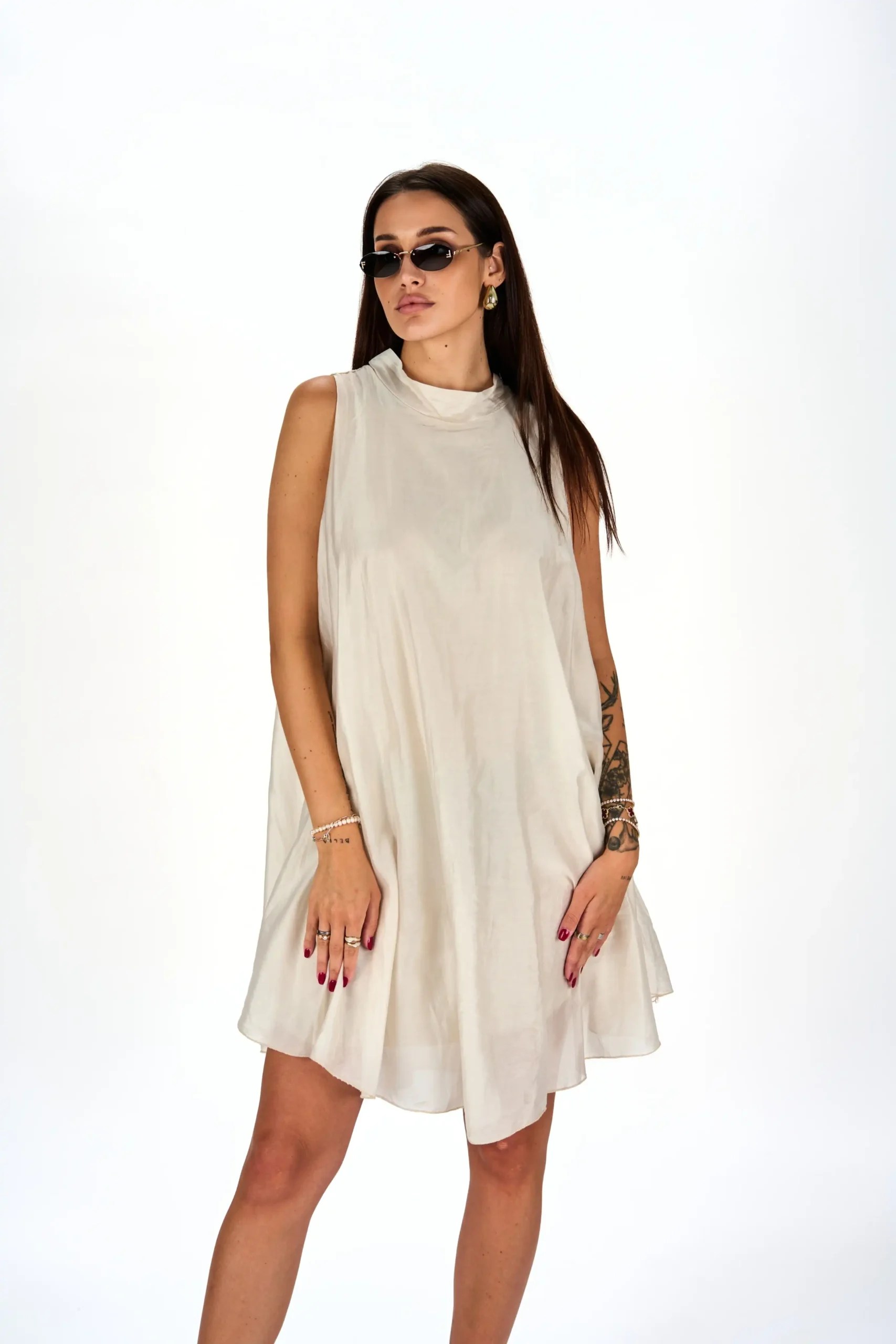 DOLGA OBLEKA BREZ ROKAVOV Z VISOKIM OVRATNIKOM