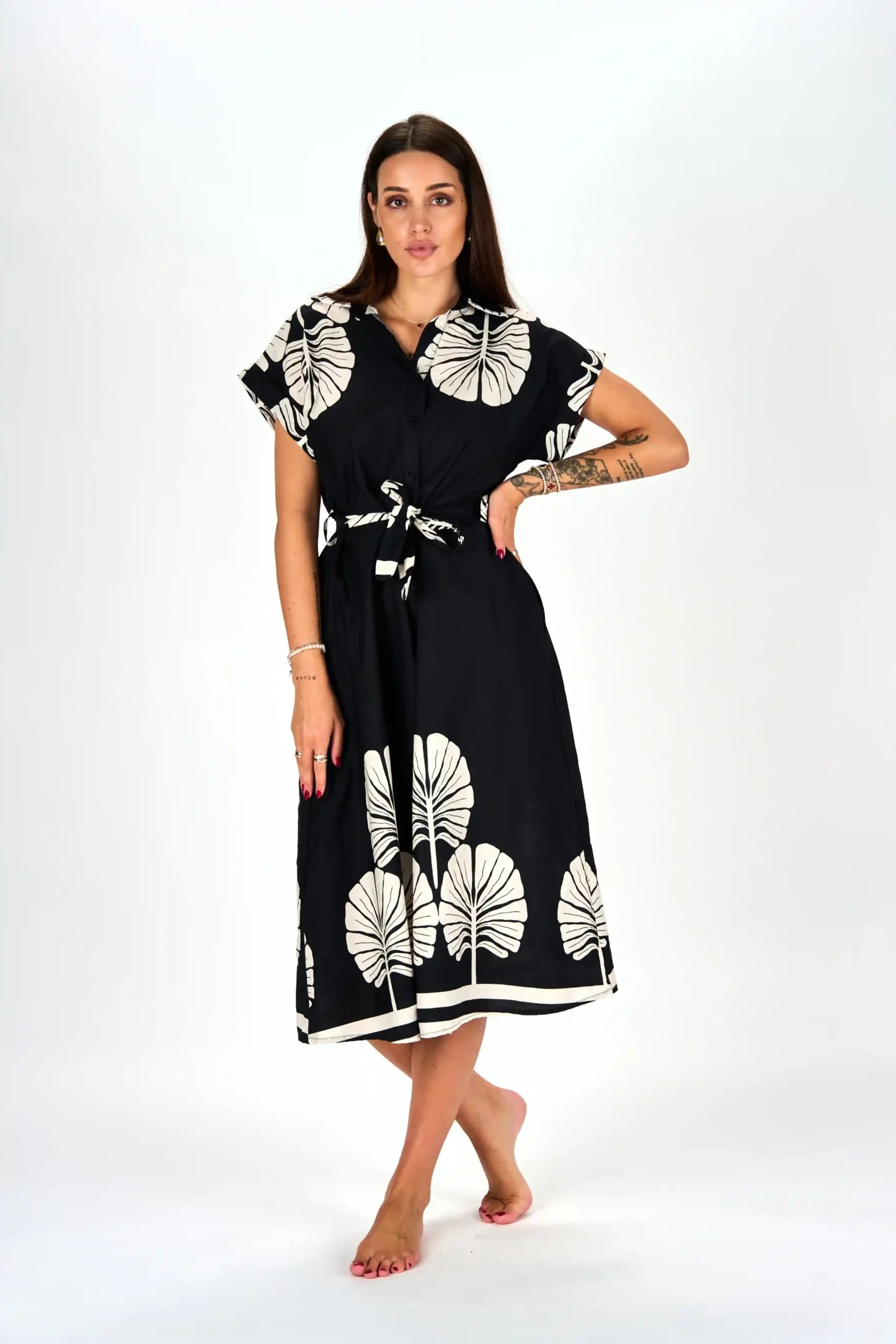 SRAJČNA OBLEKA IZ BOMBAŽNE VISKOZE S CVETLIČNIMI POTISKI