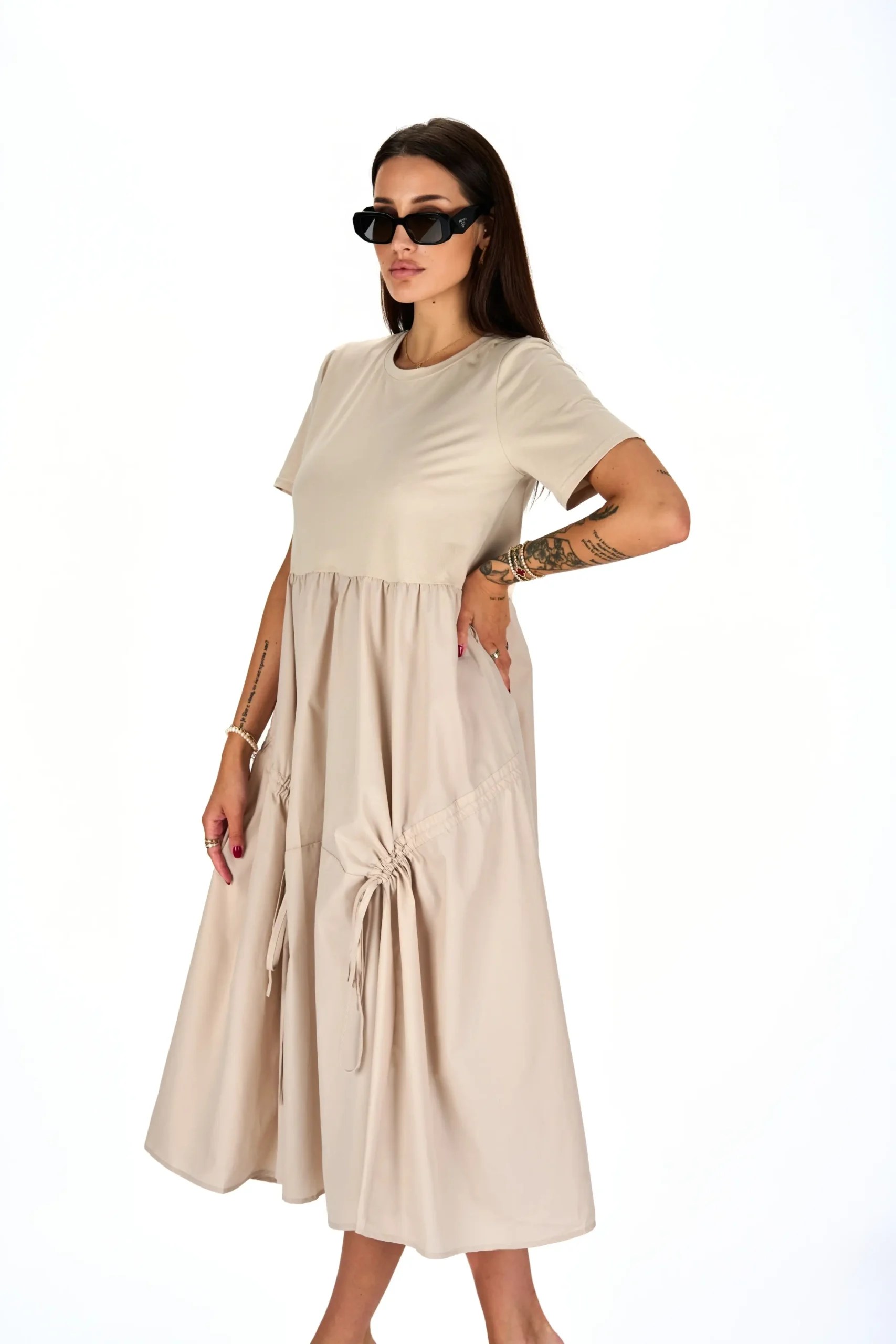 BOMBAŽNA OBLEKA Z MEHKIM ZGORNJIM DELOM IN POPLIN SPODNJIM DELOM