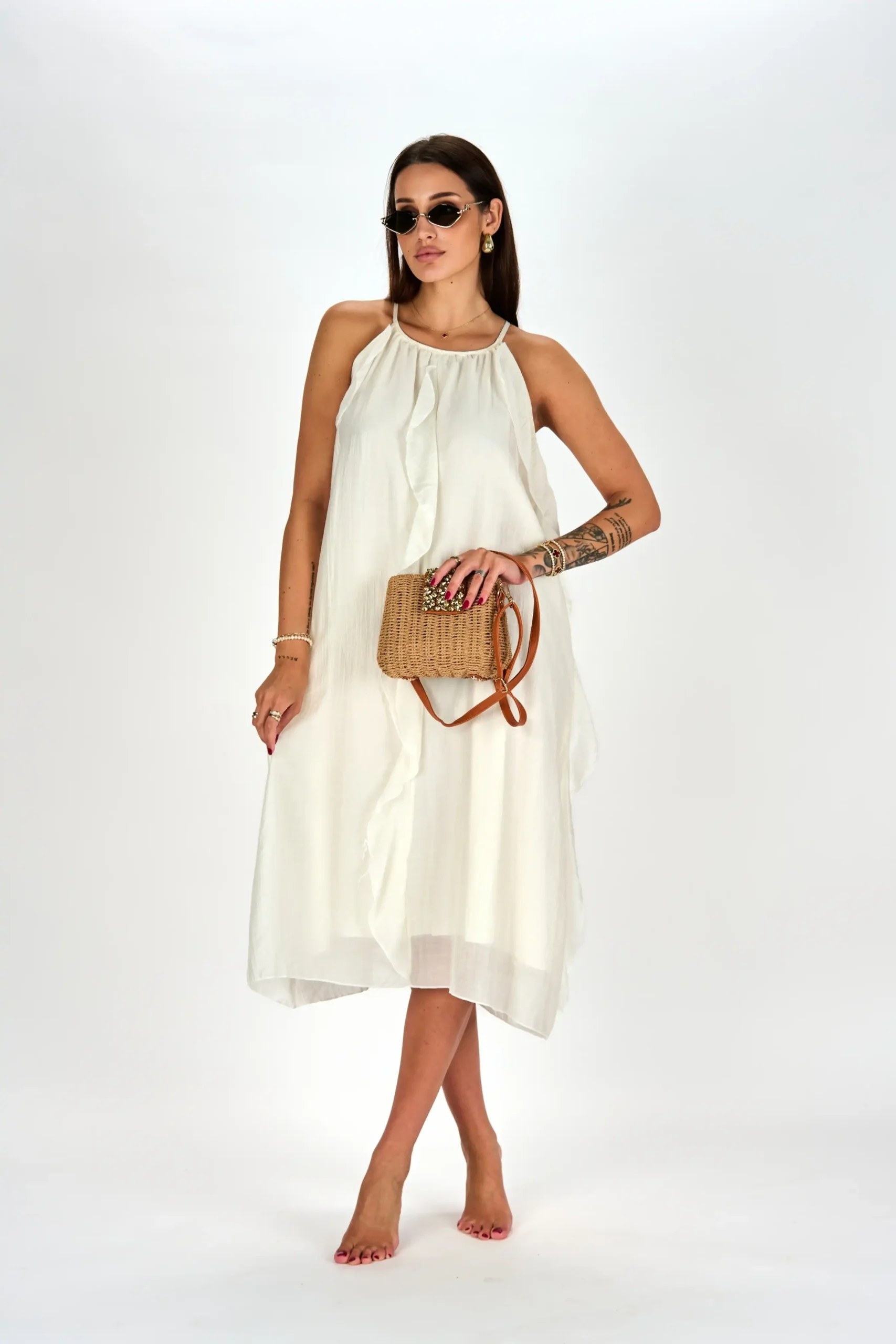DOLGA OPRIJETA BOMBAŽNA OBLEKA Z NARAMNICAMI